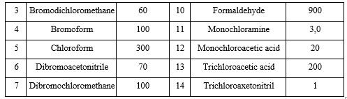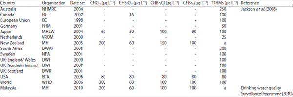 Như vậy để đảm bảo chất lượng nước ăn uống, WHO (1996) quy định nồng độ giá trị tối đa (Guideline Values-GV) các dạng THMs trong nước: Chloroform là 200 μg/L, Bromodichloromethane là 60 μg/L, Dibromochloromethane là 100 μg/L và Bromoform là 100 μg/L. Tổng của các nồng độ các chất THM riêng lẻ chia cho nồng độ GV của nó không được lớn hơn 1.